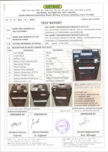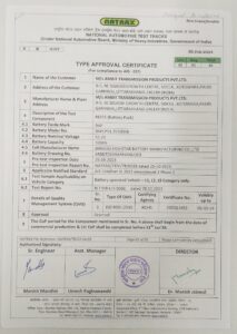 AIS-156 Type Approval received for electric vehicle batteries, a crucial safety standard for EVs in India.